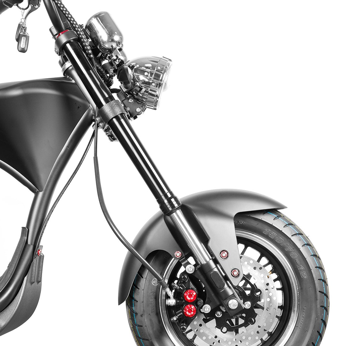 | Motor | 2000W Brushless DC Geared Motor with 125 NM max motor torque, up to 37 MPH (max speed). Motor brand: QS motor. | Lights | Front: Oversized headlight with turn light Rear: Integrated taillight on the fender with brake light, direction indicator. |